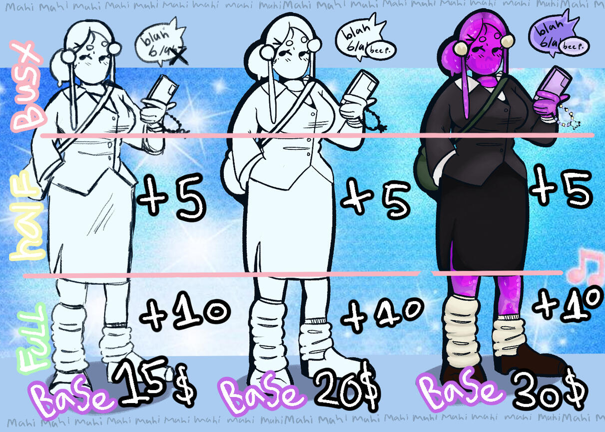 SAME AS MY DNR FOR DRAWN COMMSNOTE: paypal takes a fee of my sale, please expect the final price to be +5$ more to cover itPRICES OUTLOOK